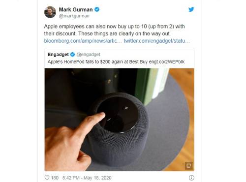 К примеру, в торговой сети BestBuy стоимость существующей версии колонки снизилась на $99 и теперь составляет $199. Кроме того, издание Bloomberg сообщает, что сотрудники Apple теперь могут приобрести до десяти HomePod со скидкой 50 %, в то время как раньше компания предлагала такую скидку только при покупке двух единиц устройства. Этот ход может демонстрировать стремление Apple распродать остатки актуальной модели перед выпуском новой.