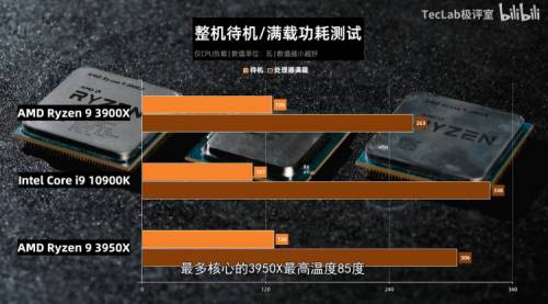 Как говорилось выше, энергопотребление процессора Intel ожидаемо оказалось очень высоким. Под нагрузкой вся система с чипом Core i9-10900K потребляла почти 340 Вт энергии, тогда как потребление компьютера на флагманском 16-ядерном Ryzen 9 3950X лишь немного превысило 300 Вт.