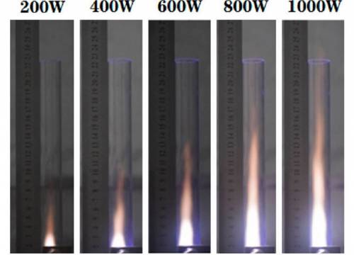 Зависимость длины плазменного факела от подаваемой на магнетрон мощности (линейная регулировка тяги)