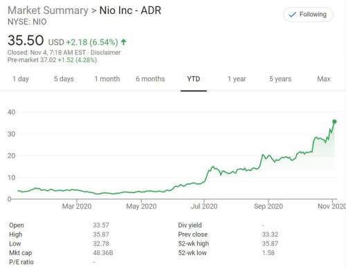 Динамика изменения стоимости акций компании NIO