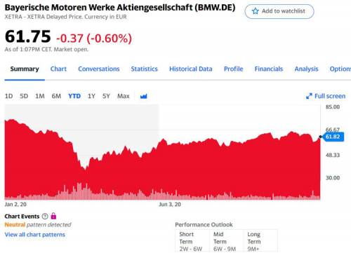 Динамика изменения стоимости акций компании BMW