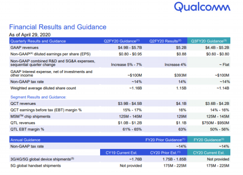 В первом календарном квартале Qualcomm увеличила выручку на 5–7 %, в зависимости от схемы расчёта, до $5,2 млрд. Сумма выручки оказалась выше ожиданий инвесторов, что вызвало рост курса акций компании почти на пять процентов. Если падение объёмов поставок мобильных устройств в первом квартале было обусловлено преимущественно процессами, происходящими в Китае, то во втором квартале на статистику уже начинает влиять глобальный рынок. Интересно, что прогноз на год по количеству 5G-устройств компания не меняет: от 175 до 225 млн экземпляров. Последний диапазон остался без изменений по сравнению с прошлым прогнозом. Совокупную ёмкость рынка смартфонов за год Qualcomm прогнозировать не берётся.