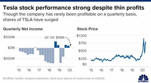Стоимость ценных бумаг Tesla выросла более чем на 9 % после публикации компанией результатов деятельности в отчётном первом квартале — несмотря на влияние пандемии COVID-19 автопроизводитель демонстрирует прибыльность третий квартал подряд.
