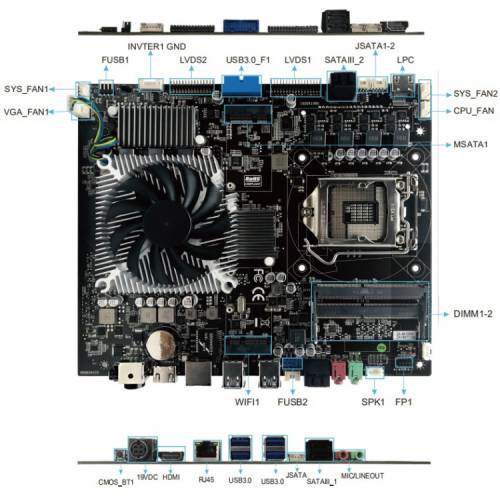 Новинка также имеет: один слот mSATA для подключения SSD-накопителей, один mini-PCIe (mPCIe), два USB 2.0 на передней панели, один USB 3.0 там же, четыре 4-pin разъёма для вентиляторов, два LVDS, один LPC-порт для подключения отладочного оборудования, а также привычный набор коннекторов для подключения звуковых устройств и кнопок фронтальной панели корпуса.