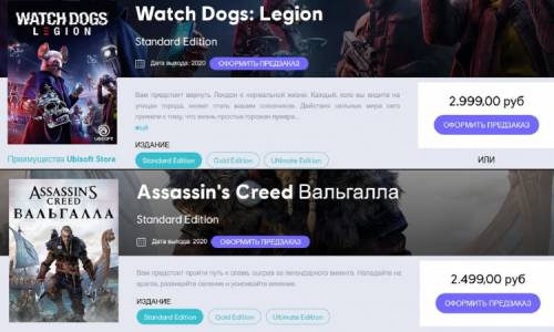 Ошибка это или новая ценовая политика Ubisoft в России, неизвестно, однако разница в стоимости сохраняется и в случае более дорогих изданий, но уже только Watch Dogs: Legion.