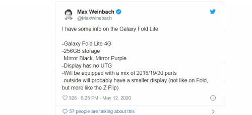 Авторитетный инсайдер Макс Вайнбах (Max Wienbach) опубликовал в Twitter пост, в котором утверждает, что смартфон получит меньший гибкий дисплей, чем у оригинального Galaxy Fold. По размерам он будет ближе к представленному в этом году Galaxy Z Flip. Также инсайдер заявляет, что дисплей смартфона лишится ультратонкого закалённого стекла, которым прикрыт дисплей Z Flip.