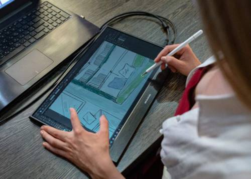 Монитор Desklab поддерживает сенсорное управление. Причём взаимодействовать с дисплеем можно не только при помощи пальцев, но и посредством специального пера. Последнее позволяет использовать экран в качеству графического планшета.
