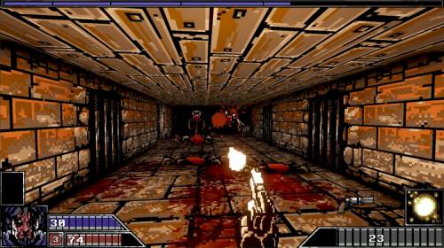 В пиксельных коридорах вам повстречаются различные враги, в том числе летающие демоны и пятиэтажные роботы, а также крупные боссы на огромных аренах (всего противников 72 вида). Справиться с ним позволит арсенал из тридцати восьми видов оружия, от клинков до больших «пушек» и восьми заклинаний.