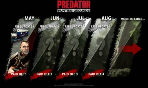 Разработчики также заявили, что будут и дальше поддерживать Predator: Hunting Grounds контентом. Каждый месяц вплоть до августа проект будет получать по одному платному DLC и обновлению, доступному всем пользователям. Illfonic намерена добавить больше режимов и снаряжения, а за реальные средства планируется продавать образы персонажей.