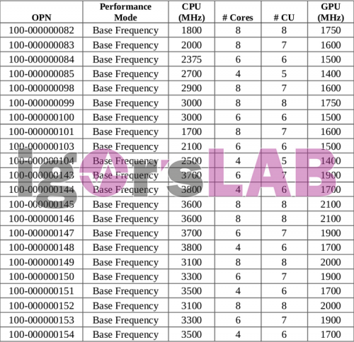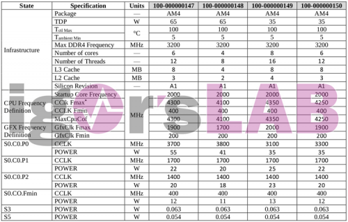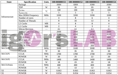 Представленную в этом материале документацию предоставил ресурсу Igor’s Lab некий надёжный анонимный источник. В первой таблице (выше) перечислены инженерные образцы как мобильных, так и настольных процессоров Ryzen 4000 семейства Renoir (последние 12 наименований). Далее же представлены таблицы с основными характеристиками именно настольных гибридных процессоров AMD нового поколения в исполнении Socket AM4.