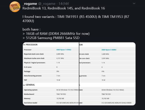 Несколько недель назад в Сеть просочилась информация о том, что Xiaomi планирует выпустить три новых ноутбука под брендом Redmi. Теперь известный сетевой источник, скрывающийся под ником @_rogame, поделился в своём Twitter-аккаунте некоторыми подробностями о готовящихся к выпуску RedmiBook.