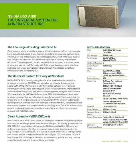 Сегодня NVIDIA представила новую графическую архитектуру Ampere, первый GPU на её основе, Ampere GA100, и дебютные продукты на этих самых GPU. Среди них оказалась и флагманская вычислительная система DGX A100, объединяющая восемь процессоров GA100 для решения задач искусственного интеллекта. Как оказалось, основой данной системы служат процессоры AMD, тогда как в предыдущих версиях системы NVIDIA DGX всегда использовались серверные чипы Intel.